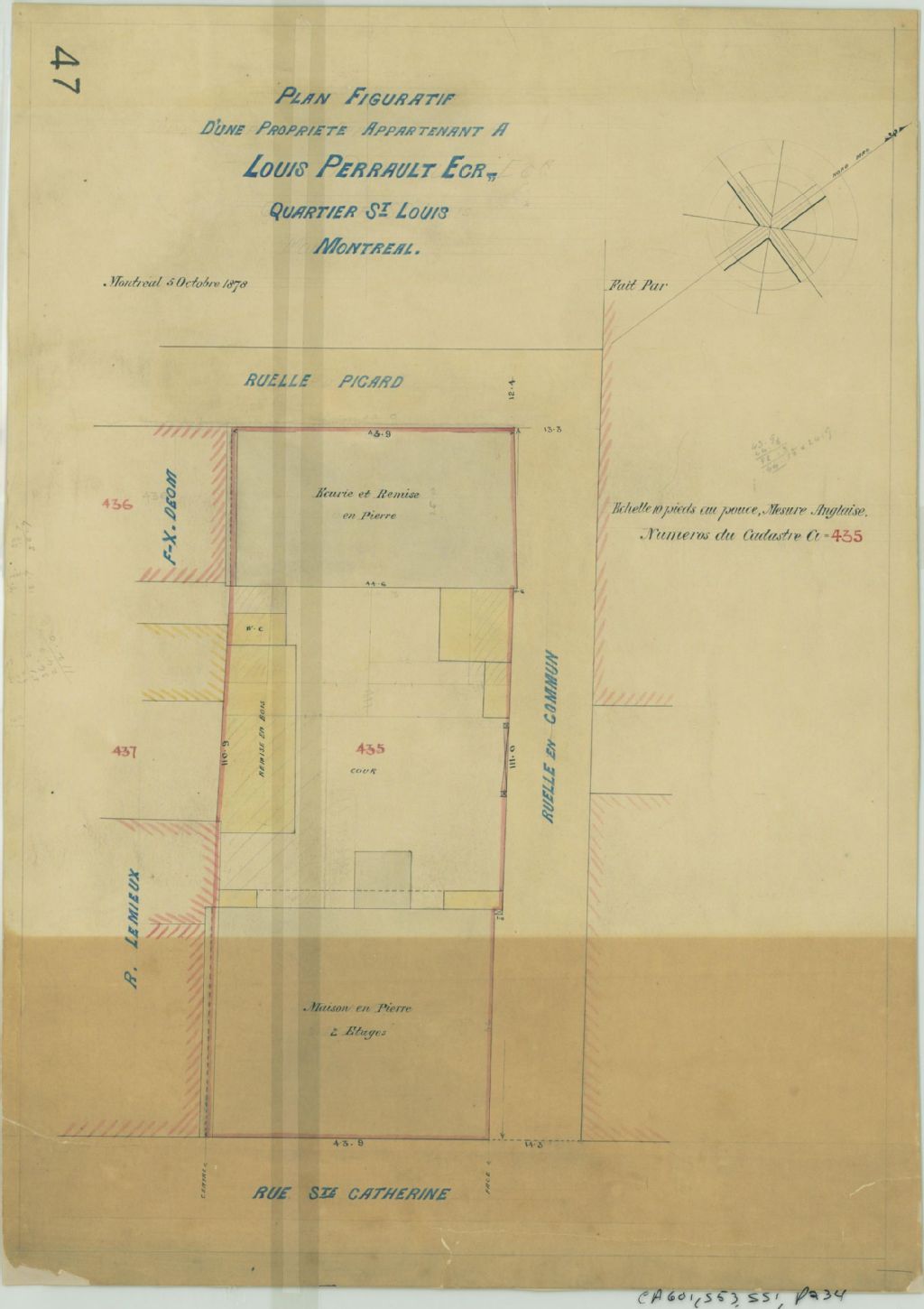 Plan figuratif d'une propriété appartenant à Louis Perrault ecr. quartier St. Louis Montréal