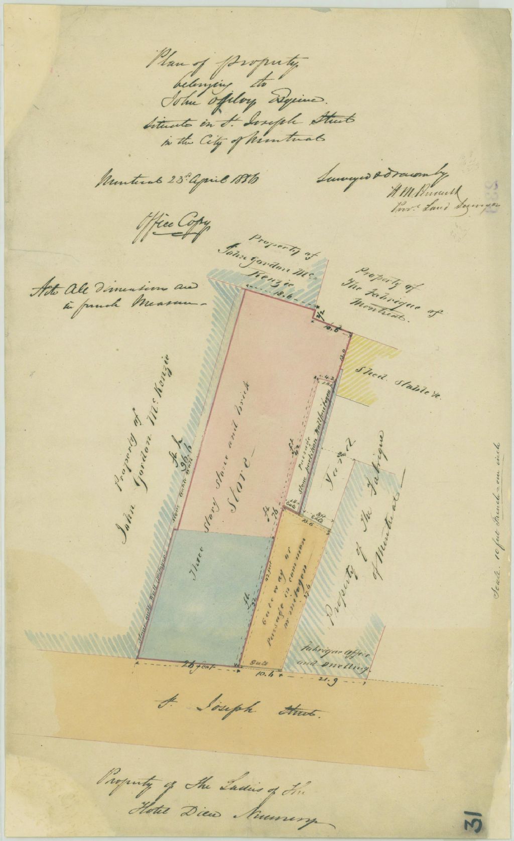 Plan of Property Belonging to John Ogilvy Esquire Situate in St. Joseph Street in the City of Montreal