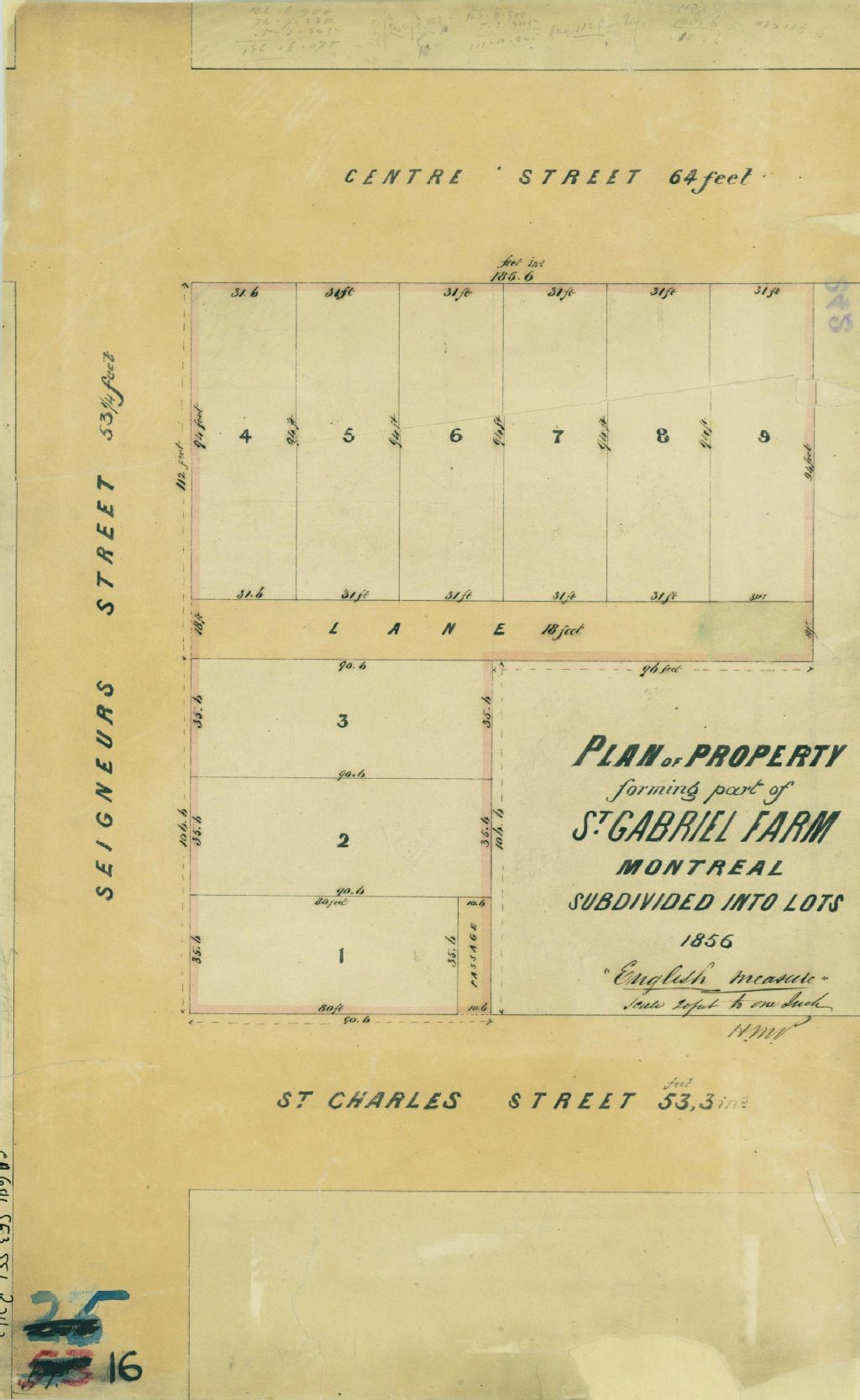 Plan of Property Forming Part of St. Gabriel Farm Montreal Subdivided into Lots