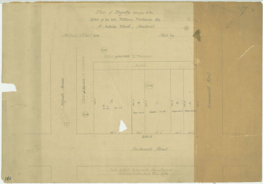 Plan of Property belonging to the Estate of the late William Workman Esq. St. Antoine Ward, Montreal