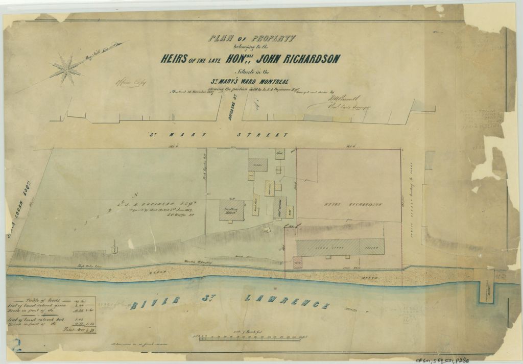 Plan of Property Belonging to the Heirs of the Late Honble. John Richardson Situate in the St. Mary's Ward Montreal Shewing the Portion Sold to L. J. A. Papineau Esqr