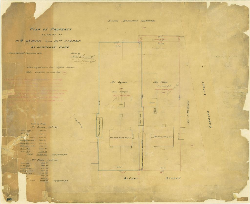 Plan of Property Belonging to Mrs Lyman and Mrs Fisher St Lawrence Ward