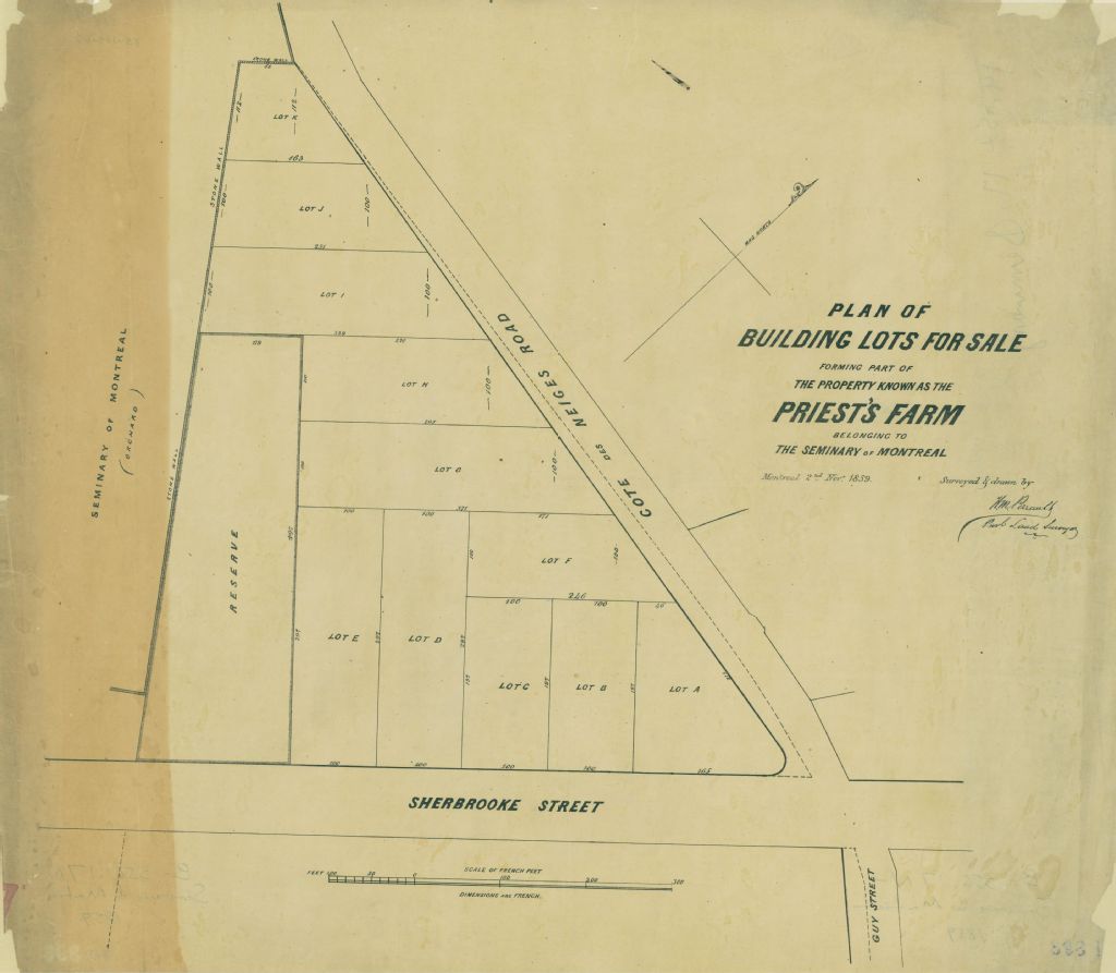 Plan of Building Lots for Sale Forming Part of the Property Known as the Priest's Farm Belonging to the Seminary of Montreal