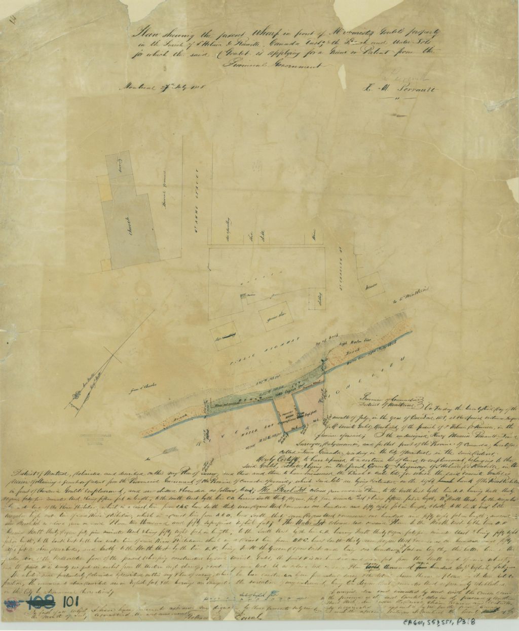Plan Shewing the Present Wharf in Front of M. Evariste Goulet's Property in the Parish of St Hilaire de Rouville Canada East; the Beach and Water Lots for which the Said M Goulet is Applying for a Grant or Patent