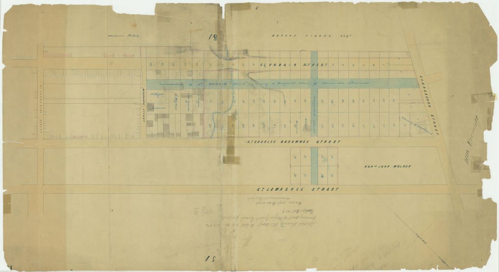 Ce plan présente les lots n° 29 à 32 appartenant au major général Evans. Ces lots sont situés entre les rues Sherbrooke, Saint-Laurent, Mignonne et la continuation future de Saint-Urbain. Ce sont les lots du cadastre seigneurial du quartier Saint-Laurent ou les n° 120 à 168 et 306 à 332 du cadastre du quartier Saint-Laurent de la cité de Montréal. Le plan continue jusqu'à la rue Sainte-Catherine sans donner de détails.La rue projetée sera appelée Evans. Les lots sont numérotés de 1 à 77. L'église d'Écosse (Wesleyan) est localisée à l'intersection des rues Sherbrooke et Saint-Charles-Borromée. Quelques lots sont déjà vendus et des résidences sont localisées sur certains, dont celles de Louis Rochon, de Monsieur Warren, de Monsieur Delorme et le marché Martineau. Les voisins sont John Molson, Duncan Fisher et Madame Nowlan