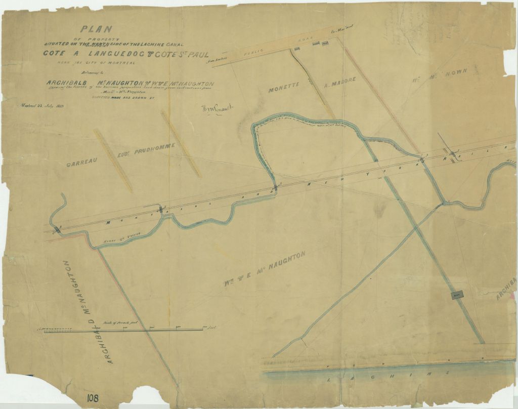 Plan of Property Situated on the North Side of the Lachine Canal Cote a Languedoc & Cote St. Paul Near the City of Montreal Belonging to Archibald Mc Naughton and W. & E. Mc Naughton Shewing the Limits of the Various Properties Laid Down