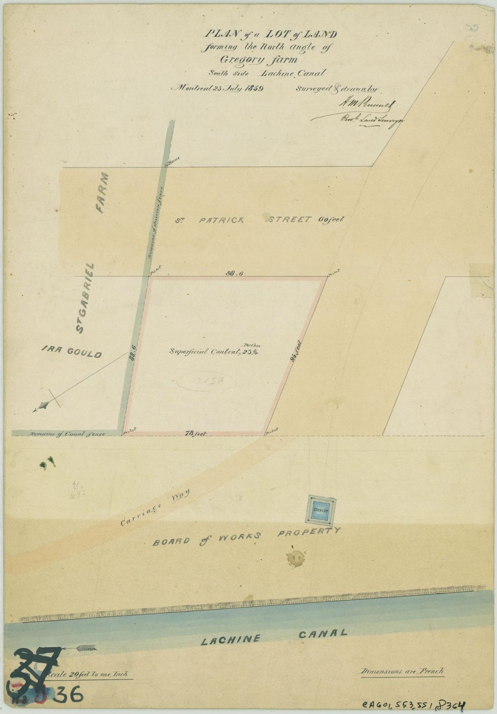 Plan of a Lot of Land Forming the North Angle of Gregory Farm South Side Lachine Canal