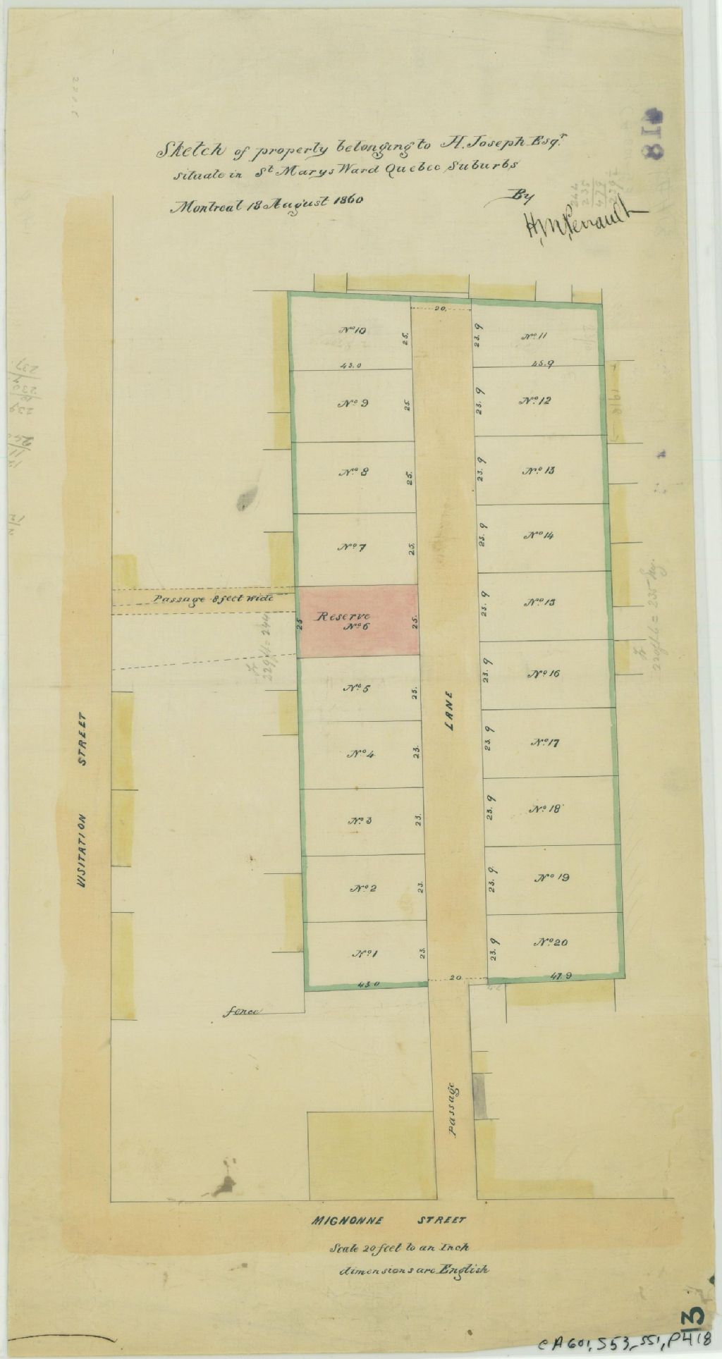Sketch of Property Belonging to H. Joseph Esqr. Situate in St Marys Ward Quebec Suburbs