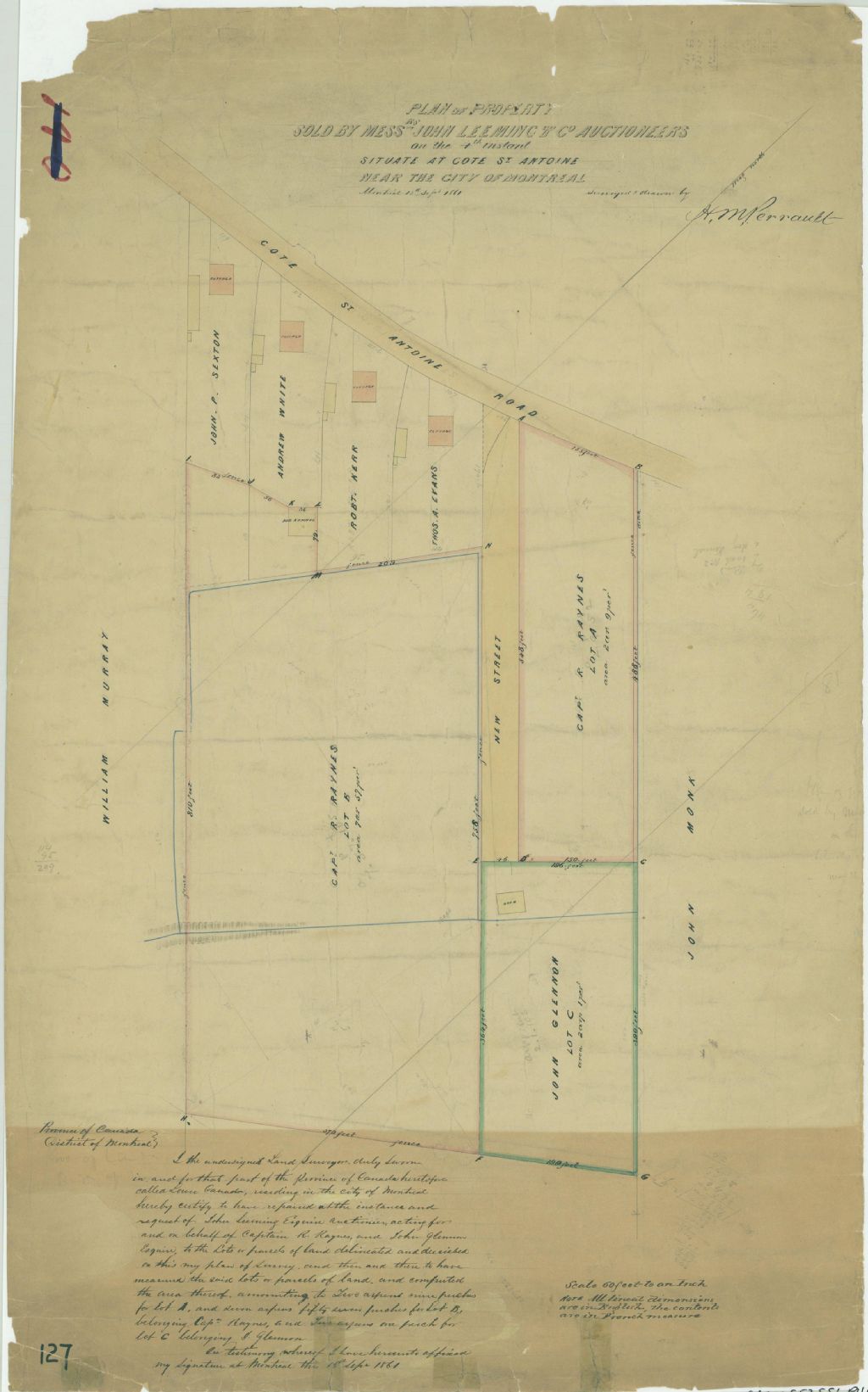 Plan of Property Sold by Messrs. John Leeming & Co Auctioneers on the 4th Instant Situated at Cote St-Antoine Near the City of Montreal