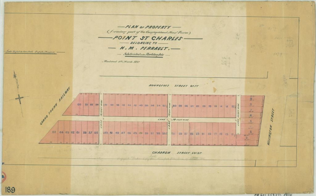 Plan of Property (Forming Part of the Congregational Nun's Farm) Point St. Charles Belonging to H. M. Perrault. Subdivided into Building Lots