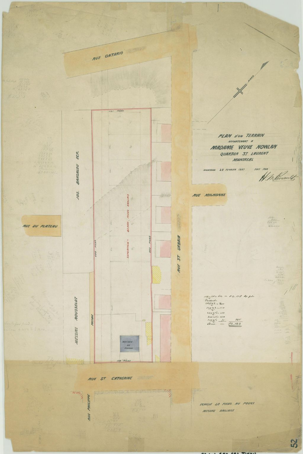 Plan d'un terrain appartenant à madame veuve Nowlan quartier St-Laurent Montréal