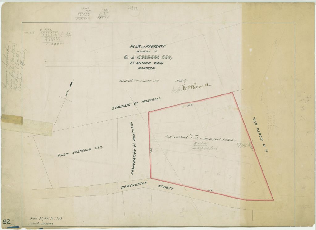 Plan of Property Belonging to C. J. Coursol Esq. St. Antoine Ward Montreal
