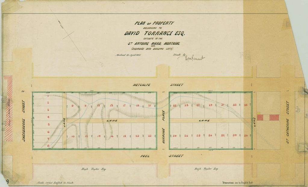 Plan of Property Belonging to David Torrance Esq. Situate in the St. Antoine Ward Montreal (Subdivided into Building Lots)