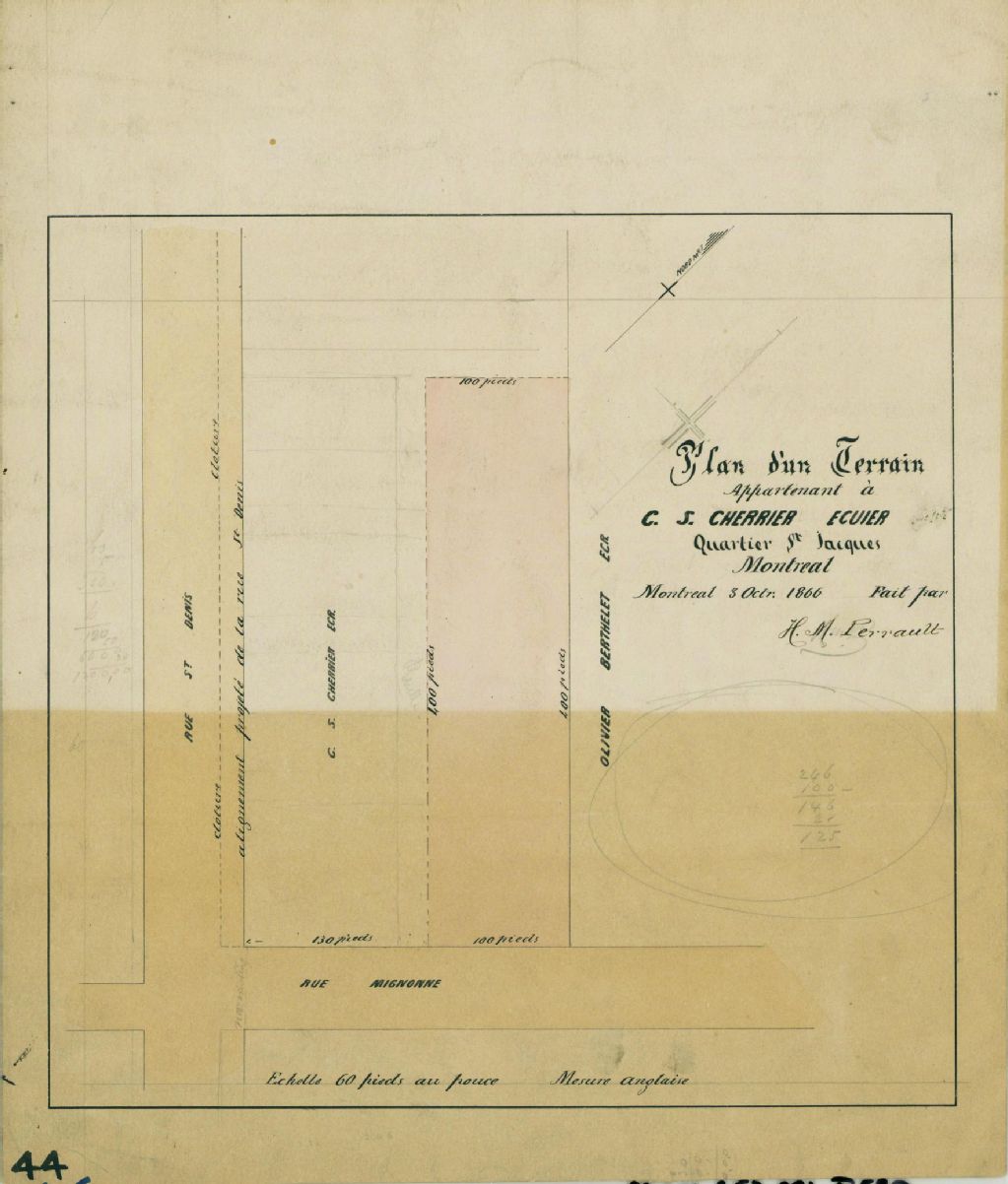 Plan d'un terrain appartenant à C. S. Cherrier écuier quartier St Jacques Montréal