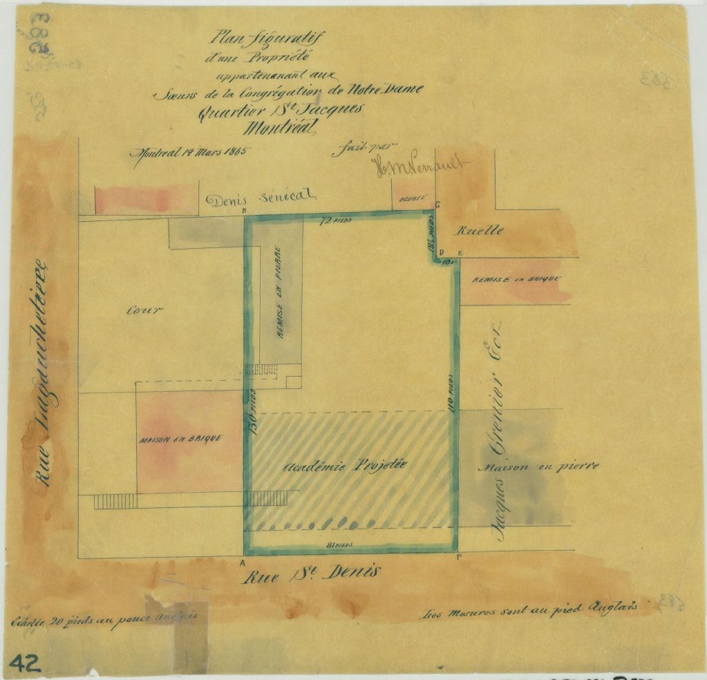 Plan figuratif d'une propriété appartenant aux Soeurs de la Congrégation de Notre Dame quartier St Jacques Montréal