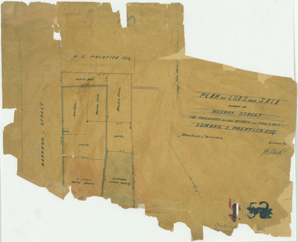 Plan of Lots for Sale Situate on Bleury Street the Property of the Estate of the Late Edward S. Prentice Esq