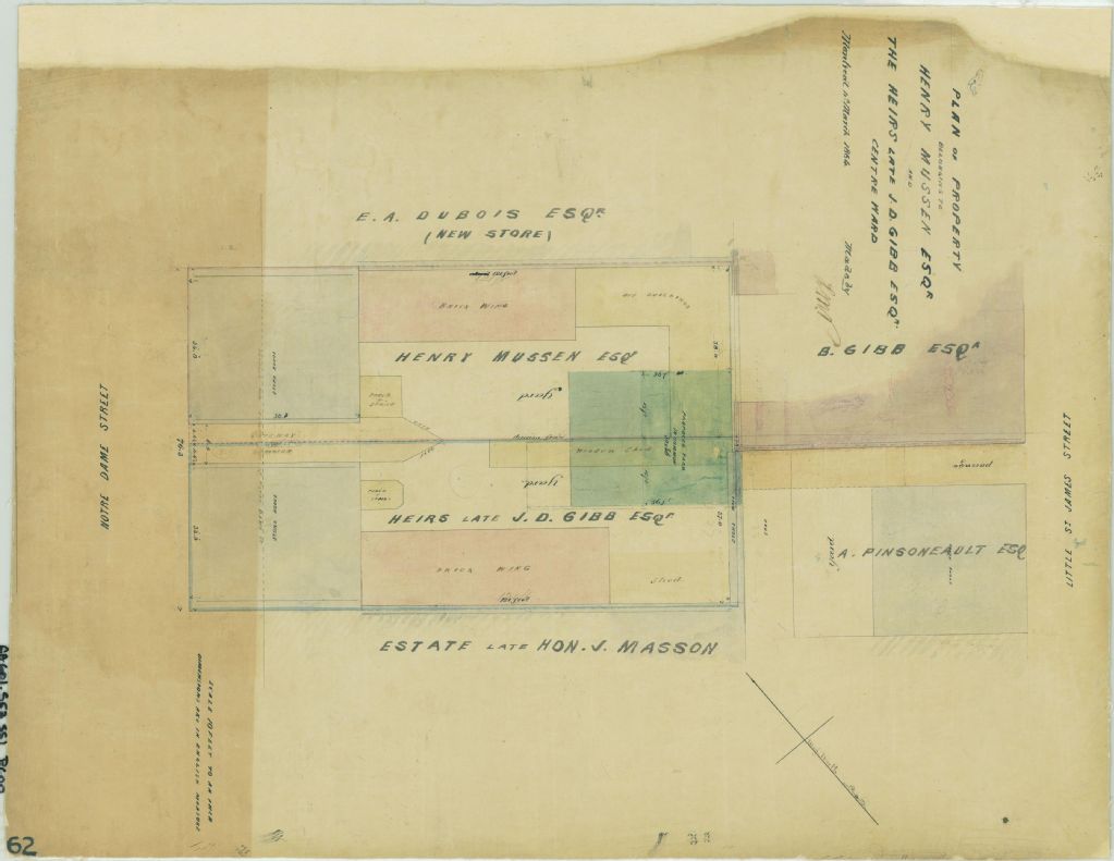 Plan of Property Belonging to Henry Mussen Esqr and Heirs Late J. D. Gibb Esqr. Center Ward
