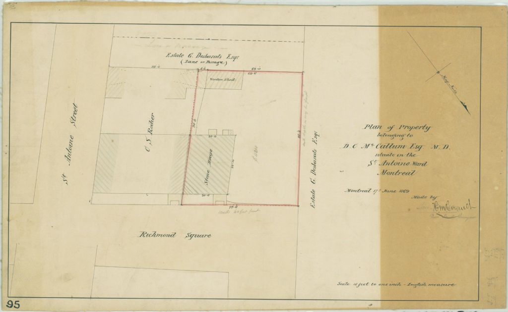 Plan of Property Belonging to D. C. Mc Callum Esq. M. D. Situate in the St. Antoine Ward Montreal