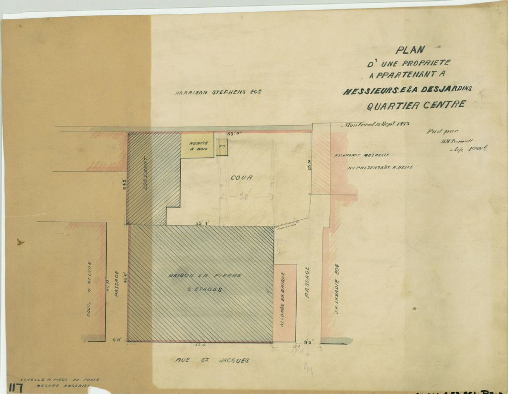 Plan d'une propriété appartenant à messieurs E. & A. Desjardins quartier centre