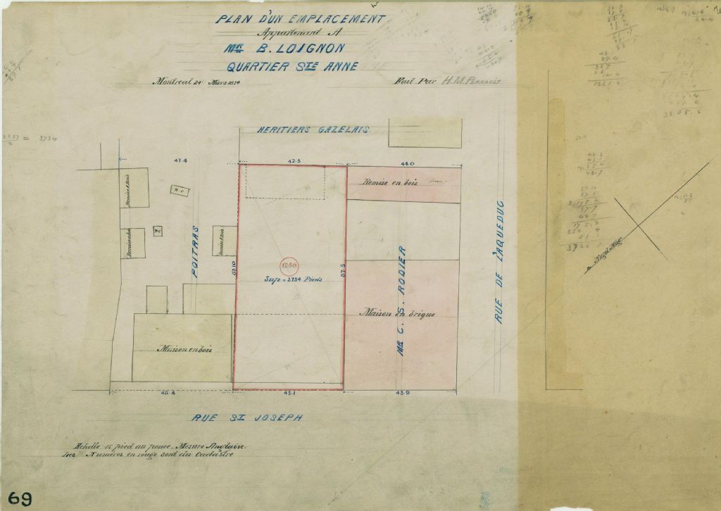 Plan d'un emplacement appartenant à Mr. B. Loignon quartier Ste-Anne