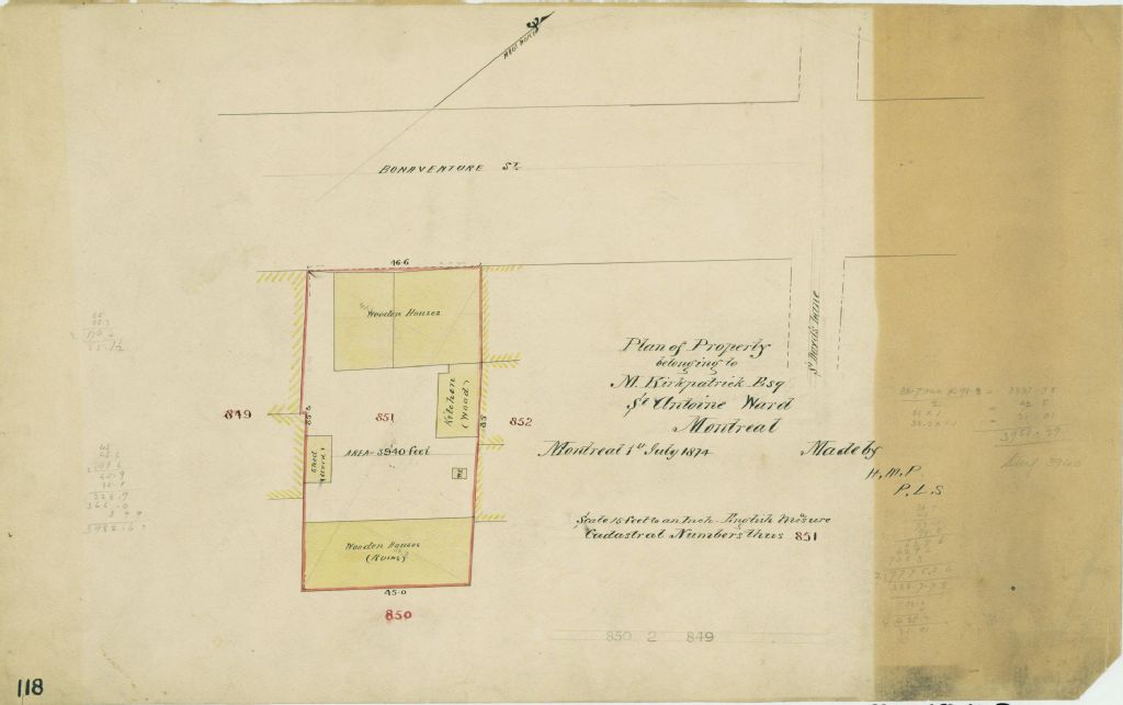 Plan of Property Belonging to M. Kirkpatrick Esq St Antoine Ward Montreal