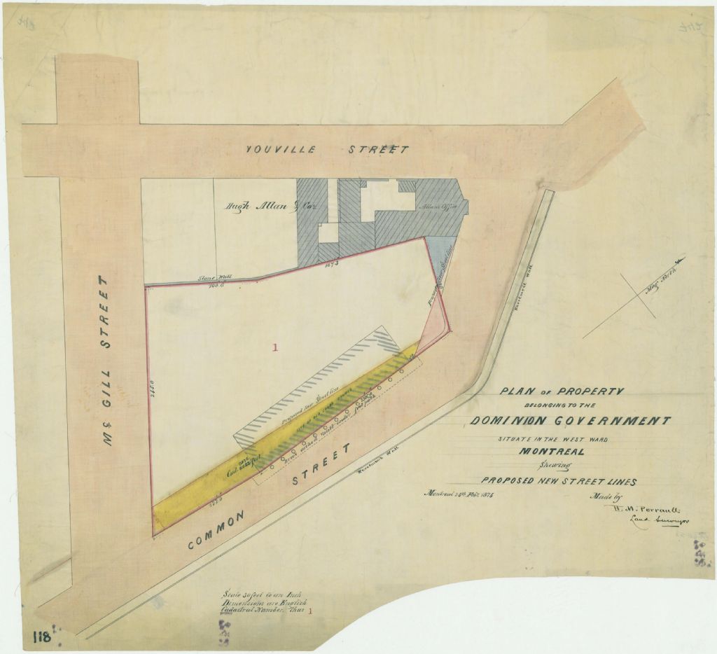 Plan of Property Belonging to the Dominion Government Situate in the West Ward Montreal Shewing Proposed New Street Lines