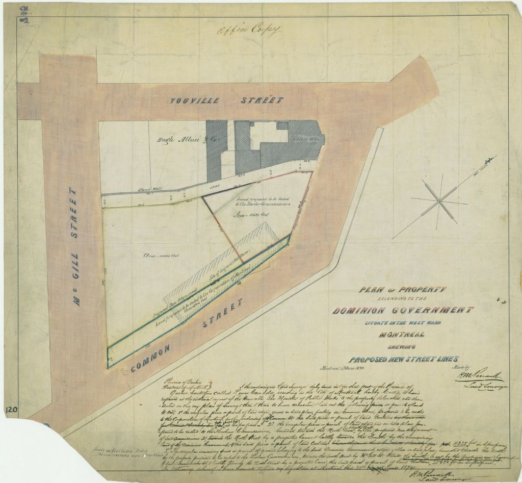 Plan of Property Belonging to the Dominion Government Situate in the West Ward Montreal Shewing Proposed New Street Lines