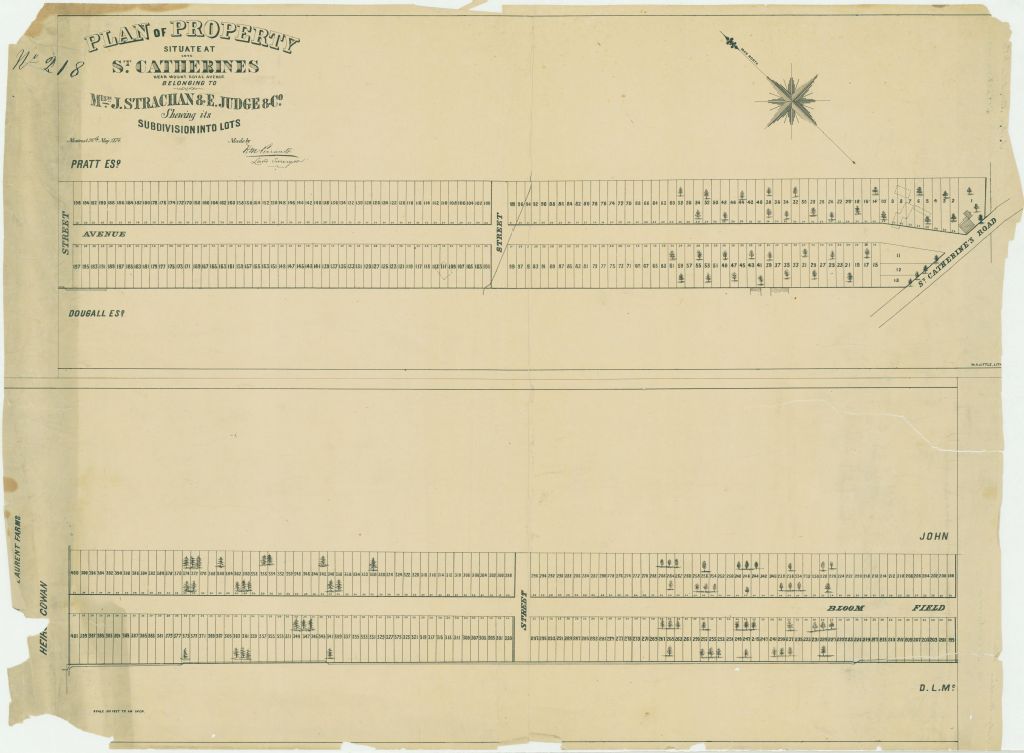 Plan of Property Situate at St. Catherines Near Mount Royal Avenue Belonging to Mesrs. J. Strachan & E. Judge & Co. Shewing its Subdivision into Lots