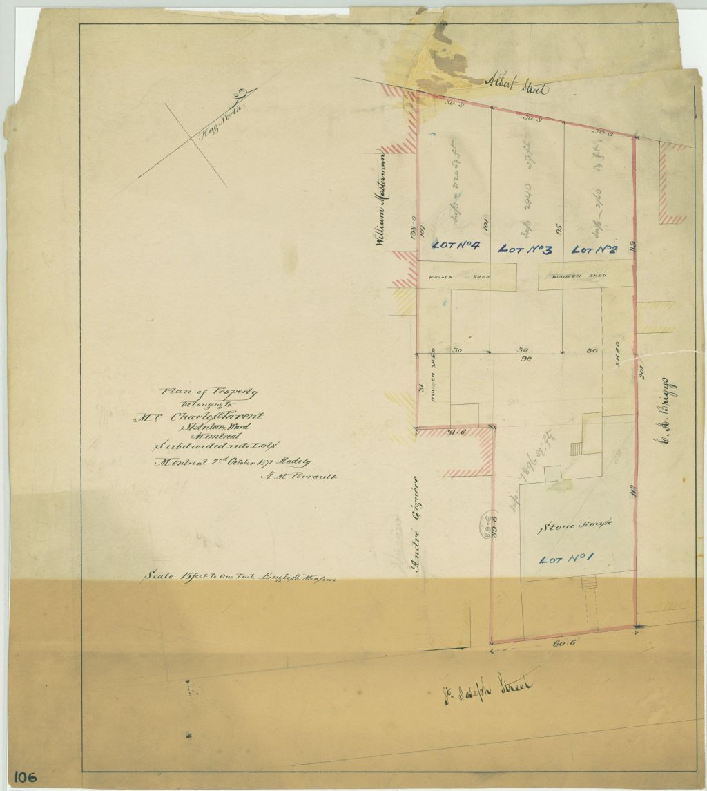 Plan of Property Belonging to Mr. Charles B. Parent St Antoine Ward Montreal Subdivided into Lots