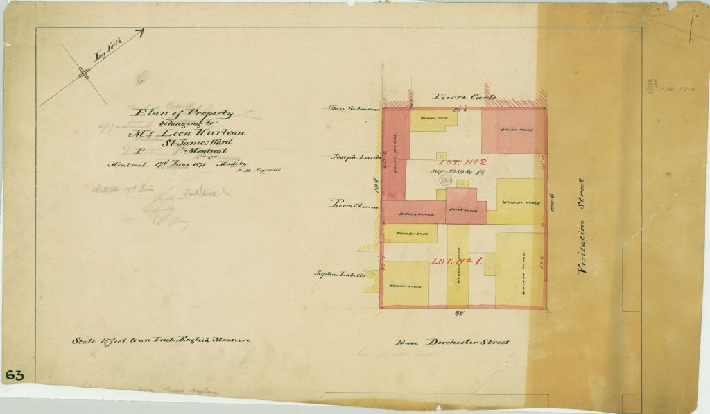 Plan of Property Belonging to Mr. Leon Hurteau St James Ward Montreal