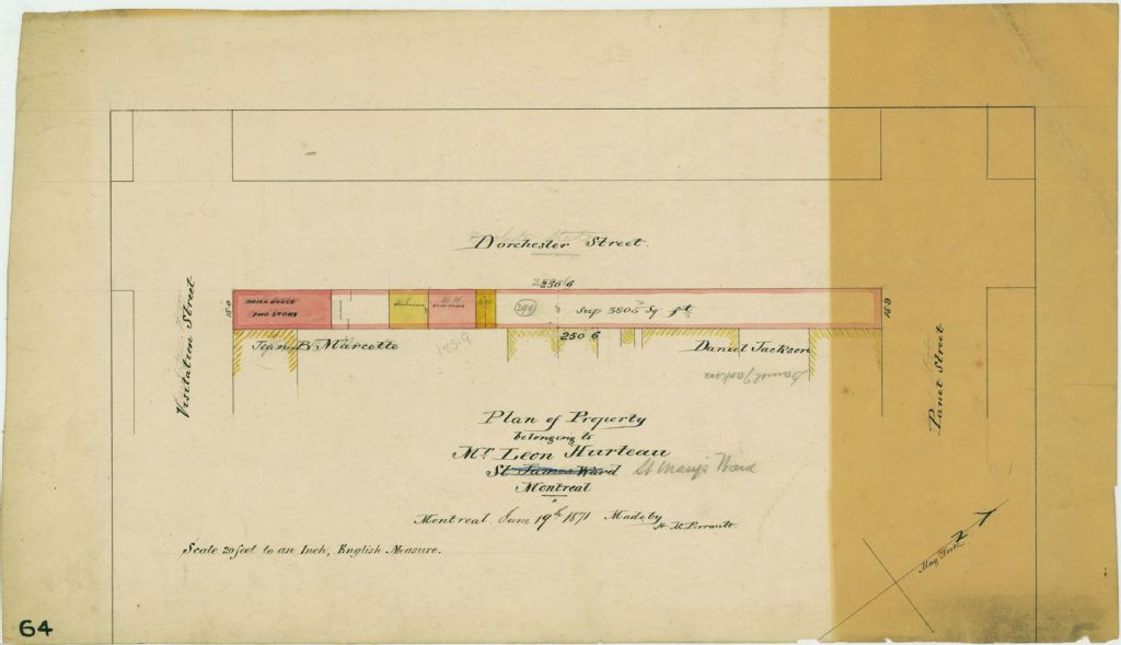 Plan of Property Belonging to Mr. Leon Hurteau St Mary's Ward Montreal