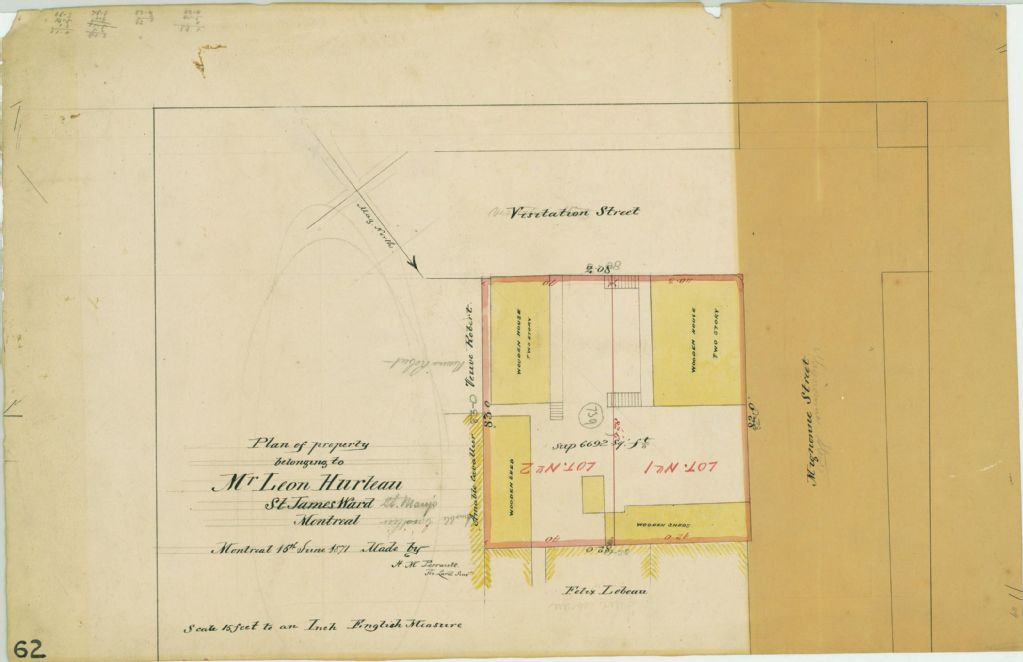 Plan of Property Belonging to Mr. Leon Hurteau St Mary's Ward Montreal