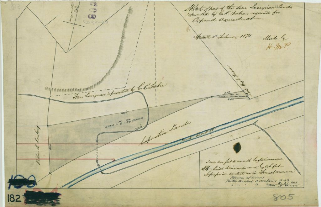 Sketch of Part of the heirs Lusignan's land, represented by G. R. Fabien required for Proposed Aqueduct