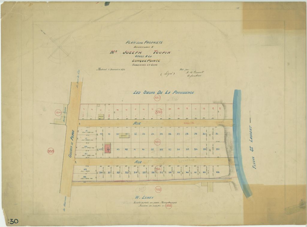 Plan d'une propriété appartenant à Mr Joseph Toupin située à la Longue Pointe subdivisée en lots