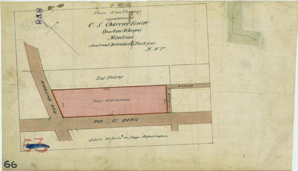 Plan d'un terrain appartenant à C. S. Cherrier écuier quartier St. Jacques Montréal