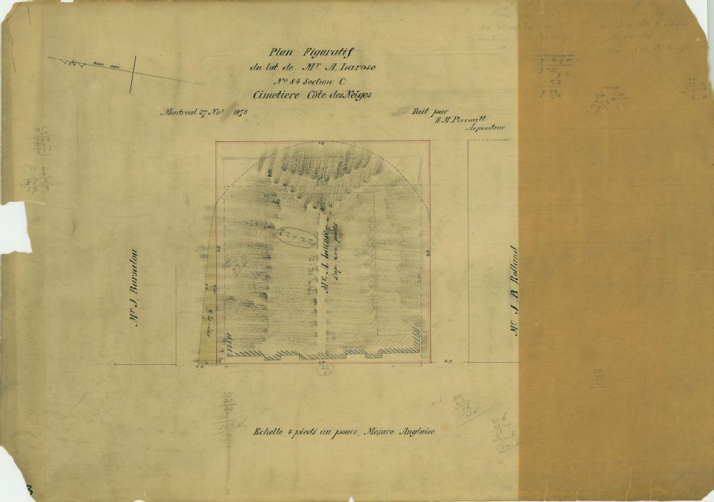 Plan figuratif du lot de Mr A. Larose numéro 84. section C Cimetière Côte des Neiges