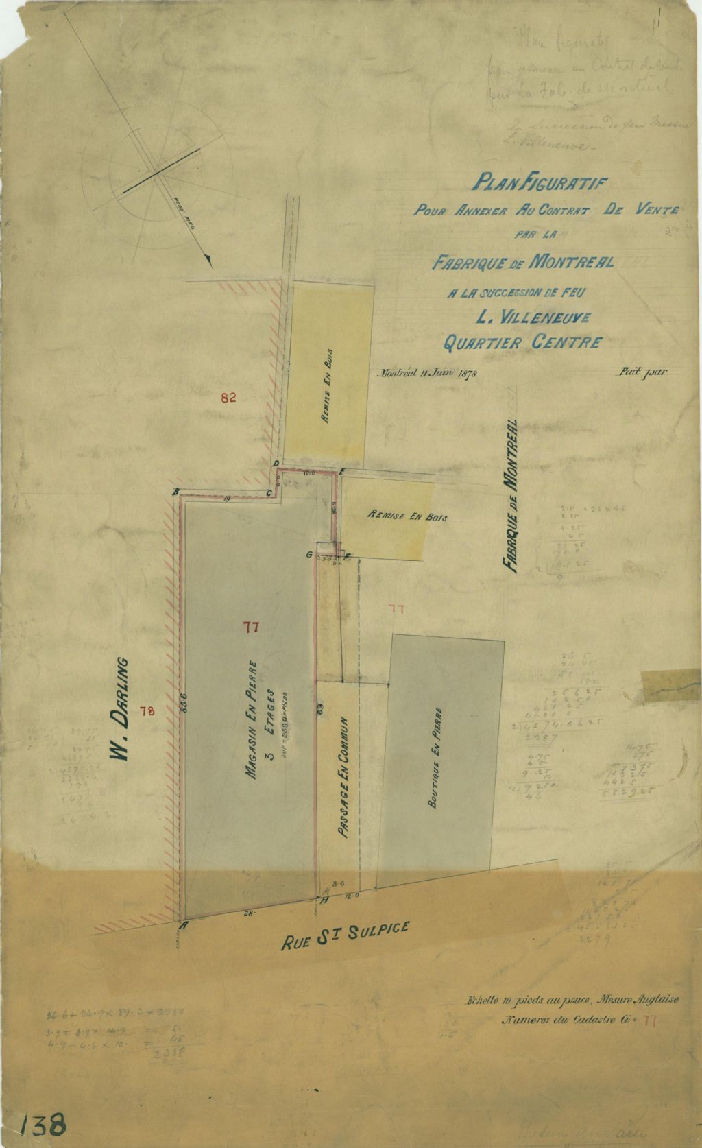 Plan Figuratif Pour Annexer Au Contrat de Vente par la Fabrique de Montréal à la Succession de feu L. Villeneuve, Quartier Centre