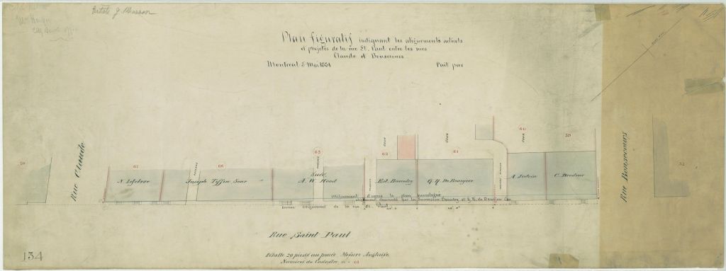 Plan figuratif indiquant les alignements actuels et projetés de la rue St. Paul entre les rues Claude et Bonsecours
