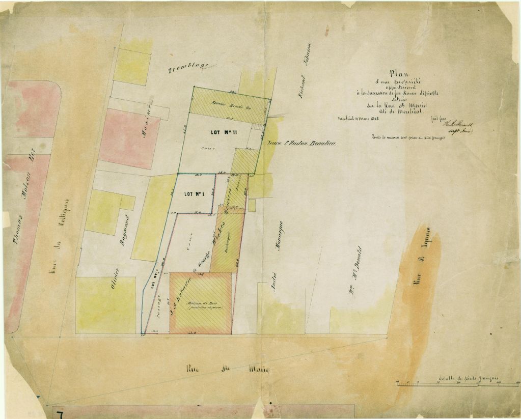 Plan d'une propriété appartenant à la succession de feu Simon Sipiotte située sur la rue Ste-Marie cité de Montréal