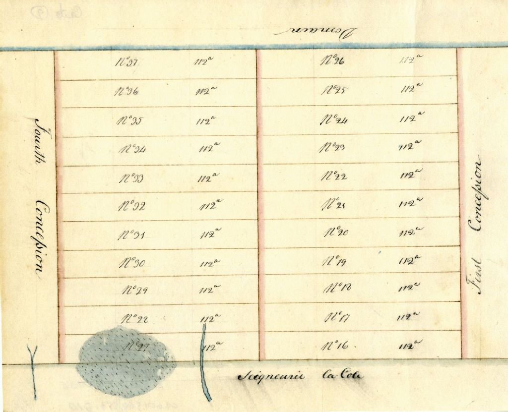 Plan montrant les lots n° 16 à 37 de la seigneurie de Lacolle