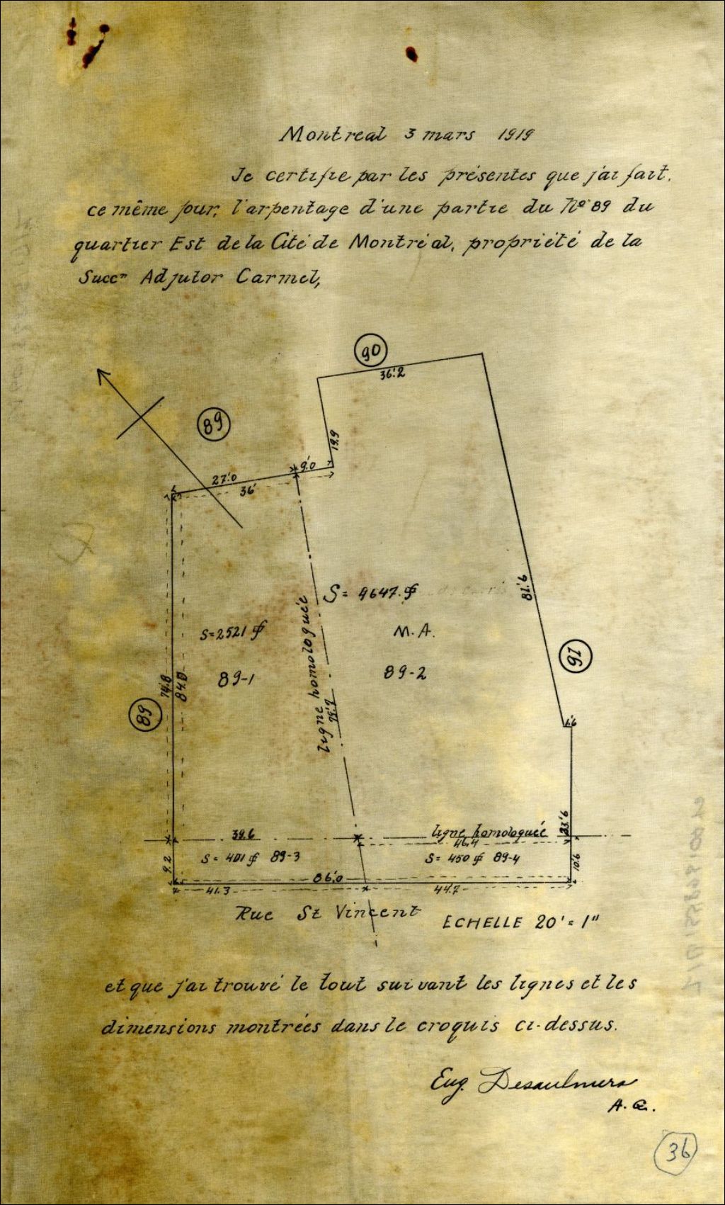 Arpentage d'une partie du lot n° 89 du quartier Est de Montréal
