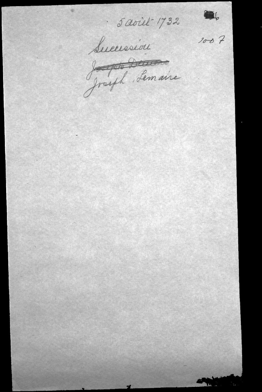 Succession de feu Joseph Lemaire et de Françoise Bouché (Boucher), 5 août 1732, Archives nationales à Québec, Fonds Cour supérieure. District judiciaire de Québec. Tutelles et curatelles, (03Q,CC301,S1,D1007).