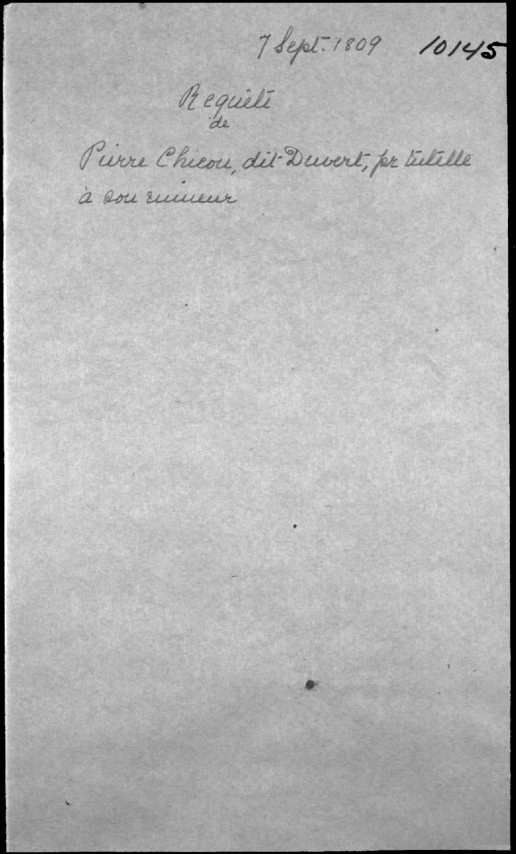 - Requête pour tutelle à l'enfant mineur de Pierre Chicou dit Duvert, chirurgien de Québec, rue Saint-Jean, et de feue Madeleine Côté