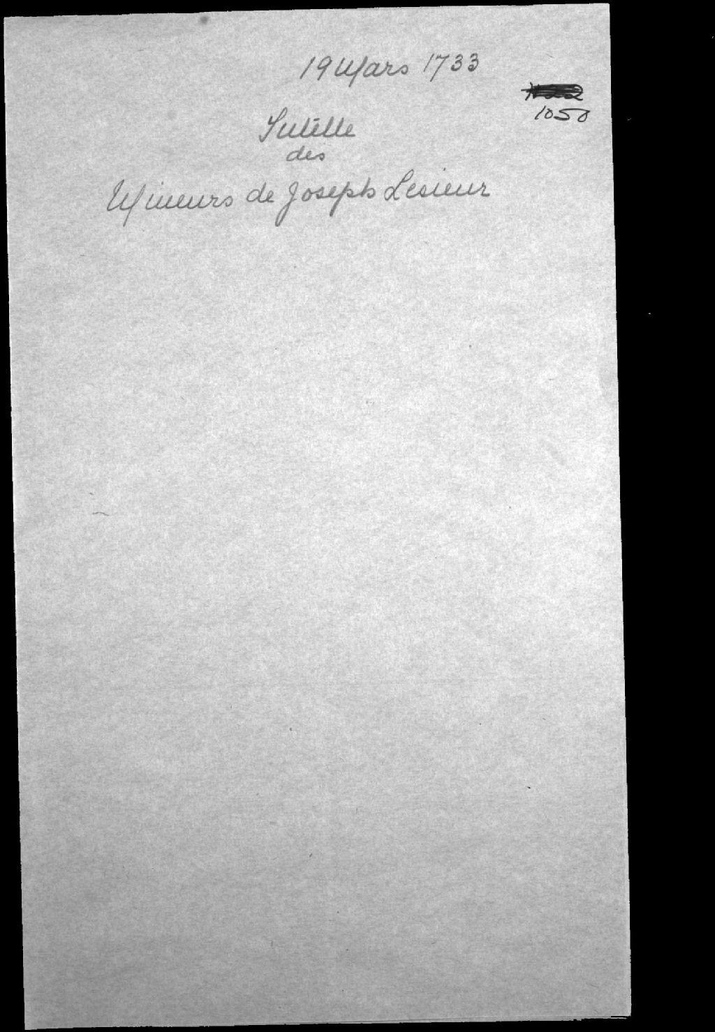 Tutelle aux mineurs de feu Joseph Lesieur, de Yamachiche, 19 mars 1733, Archives nationales à Québec, Fonds Cour supérieure. District judiciaire de Québec. Tutelles et curatelles, (03Q,CC301,S1,D1050).