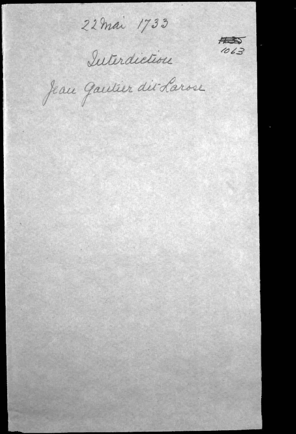 Procédures pour l'interdiction pour démence de Jean Gautier dit Larose, habitant, de Saint-Laurent, île d'Orléans