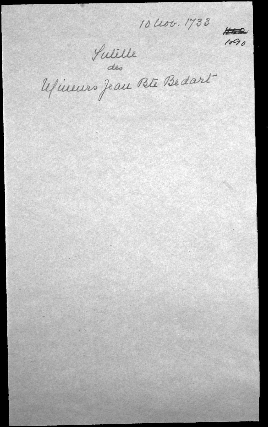 - Tutelle aux mineurs de Jean-Baptiste Bédard, habitant, de Saint-Bernard, Charlesbourg, et de feue Marie-Jeanne Paradis