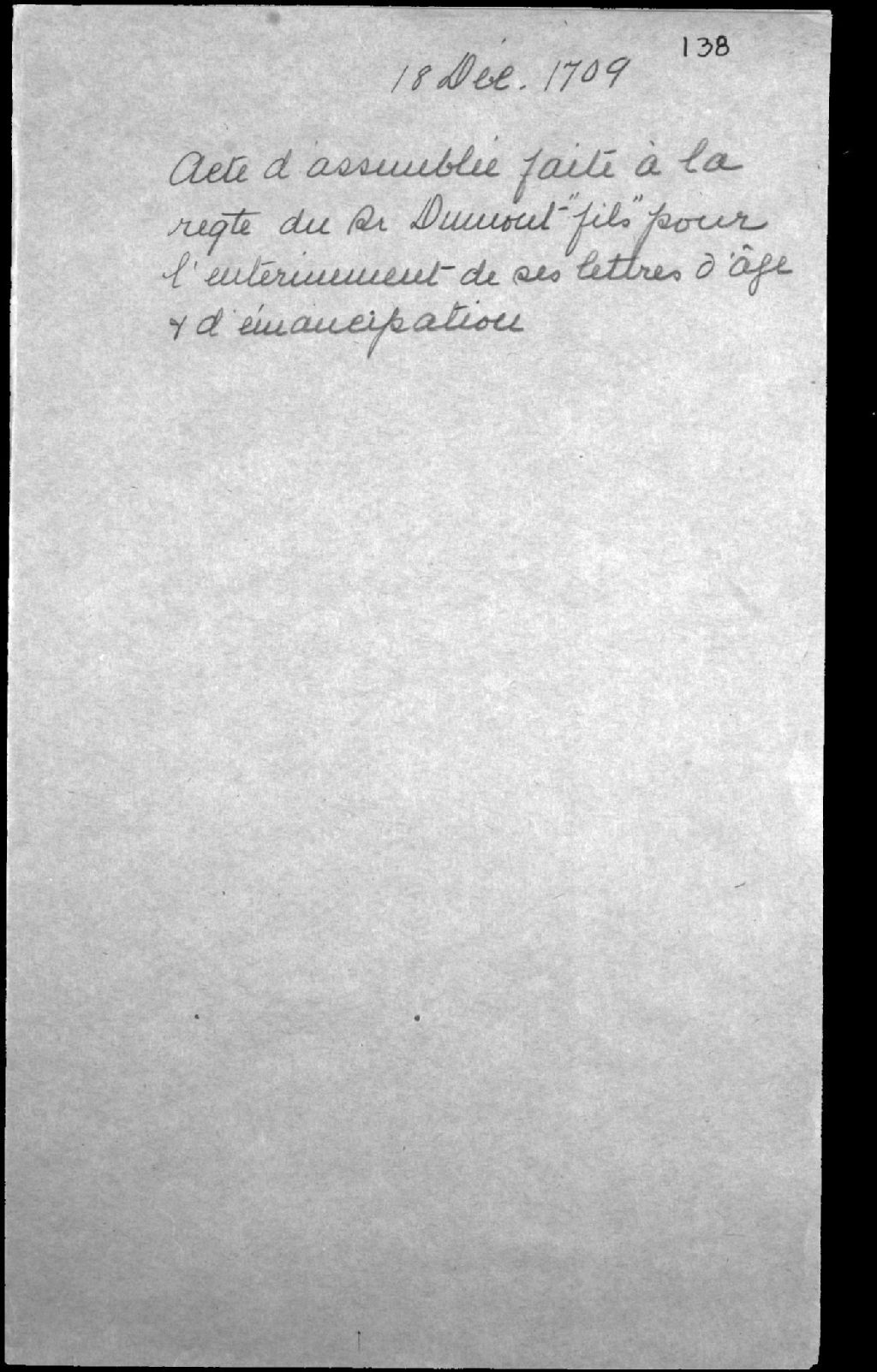 Émancipation d'Eustache, fils mineur de feu Eustache Lambert dit Dumont, marchand, de Québec, et de feue Marie Vanneck