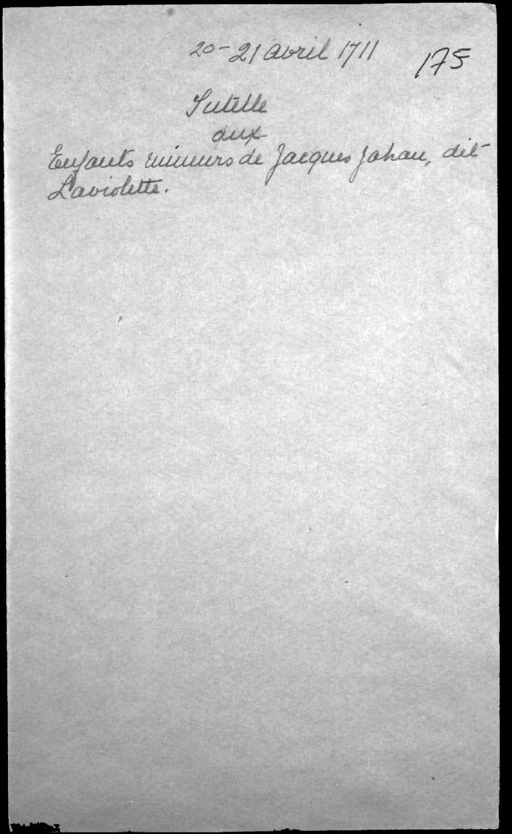 - Procès verbal de levée des scellés qui étaient apposés en la tannerie, et description de ce qui était dans la dite tannerie de feu Jacques Jahan dit Laviolette, tanneur, de Saint-Jean, île d'Orléans, et d'Anne Trépagny (Trépagnier, Trépanier)