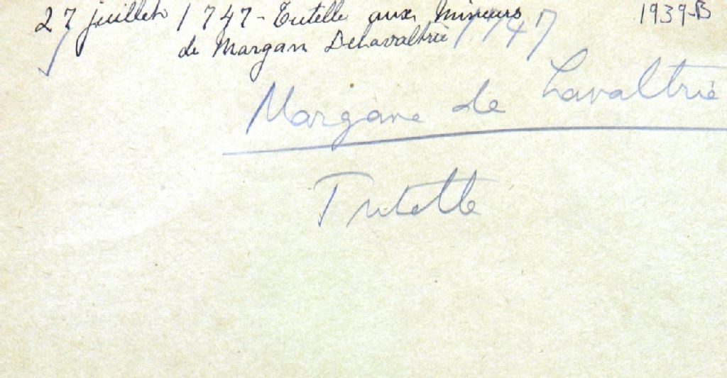 Tutelle aux mineurs de feu Louis Margane de Lavaltrie et de Marie-Anne Couillard, 27 juillet 1747, Archives nationales à Québec, Fonds Cour supérieure. District judiciaire de Québec. Tutelles et curatelles, (03Q,CC301,S1,D1939-B).