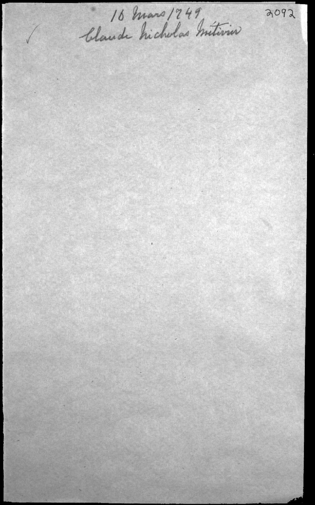 - Enquête relative à la mort subite de Claude-Nicolas Métivier, soldat de la compagnie de La Martinière, natif de la paroisse de Saint-Nicolas-de-Meung, diocèse d'Orléans, décédé le 9 mars 1749 à Québec, quartier du Palais, dans la maison de Jean-Baptiste Monmellian, charpentier de navire